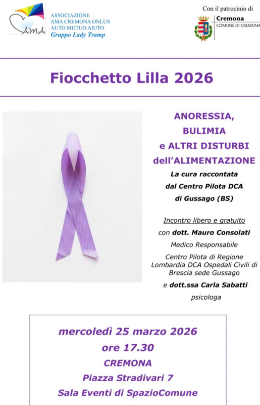 L’iniziativa si colloca nel solco della “Giornata Nazionale del Fiocchetto Lilla” dello scorso 15 marzo, dedicata alla sensibilizzazione sui Disturbi della Nutrizione e dell’Alimentazione (D-NA), per mantenere alta l'attenzione su una realtà complessa e spesso dolorosa, si è scelto di portare in città la testimonianza diretta di una delle eccellenze cliniche del territorio lombardo.
