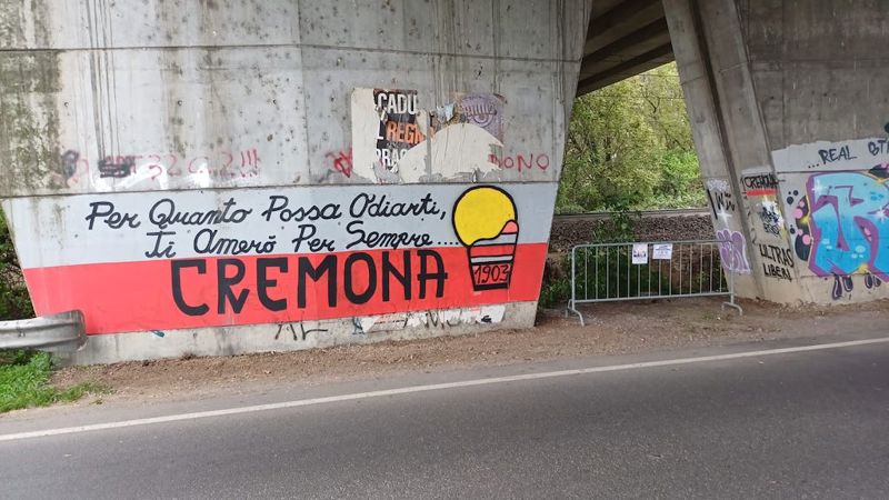 Davanti al punto di partenza degli scarichi resta una transenna con i cartelli dei Limpiadores e un bellissimo murales che recita: "Per quanto possa odiarti, ti amerò per sempre Cremona".