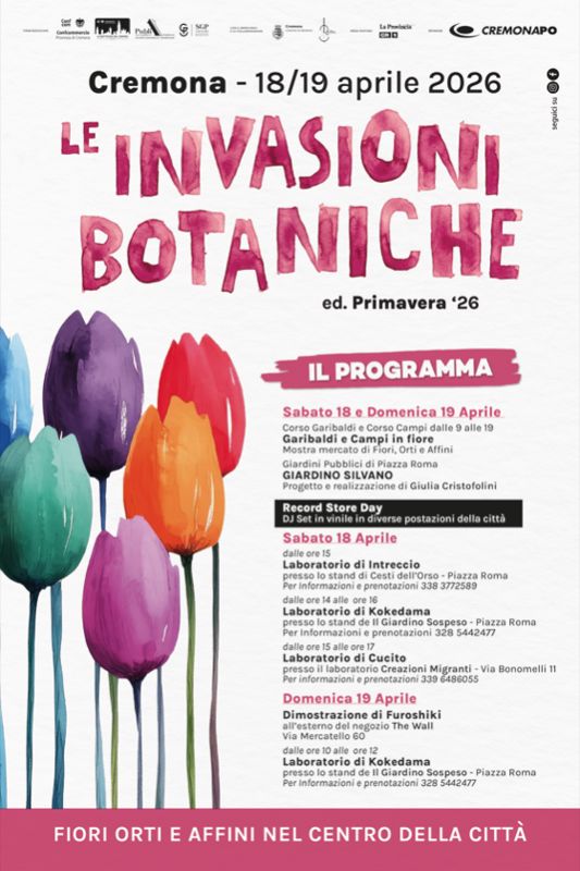 Oltre settanata espositori e, come sempre, una pacifica invasione di colori della natura nel centor di Cremona durante questo fine settimana. Cremona si prepara infatti a diventare un tappeto fiorito per la quindicesima edizione de Le Invasioni Botaniche, in programma Sabato 18 e Domenica 19 Aprile nel centro della città.