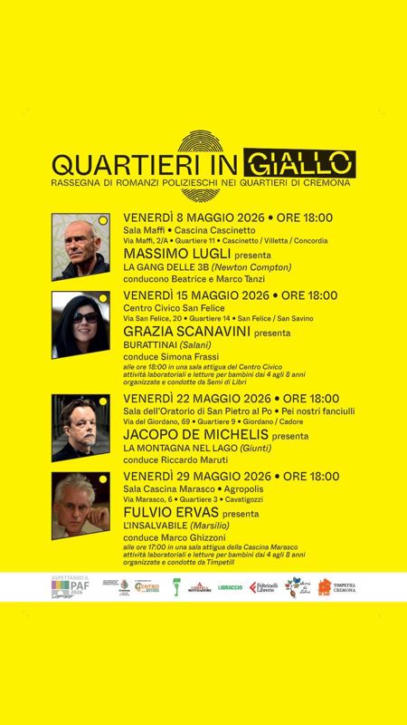 Dopo il successo della prima edizione nel maggio del 2025, torna a Cremona Quartieri in Giallo, la rassegna letteraria diffusa nei quartieri pensata e ideata con gli organizzatori del Porte Aperte Festival.
