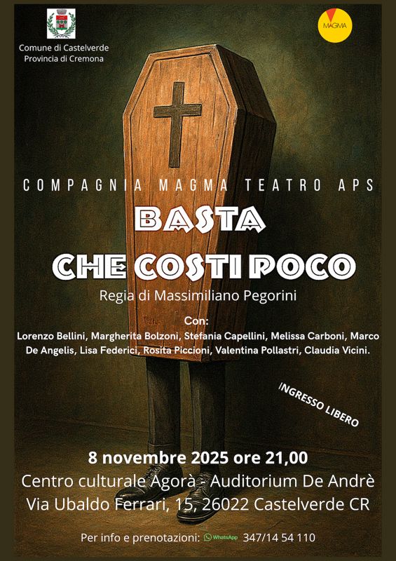 La prima serata sarà affidata alla compagnia Magma Teatro, che porterà in scena una pièce brillante e fuori dagli schemi, ambientata in un’agenzia di pompe funebri.