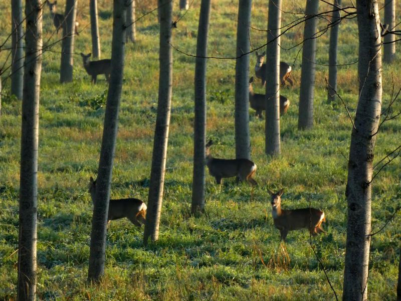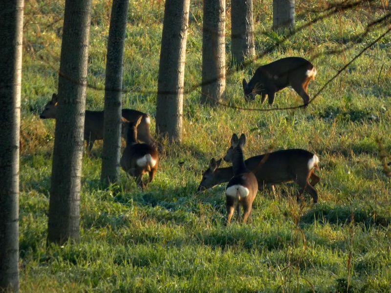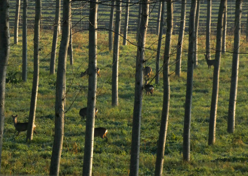 In un pioppeto a due passi dal Po, nel Cremonese (non si rivela la località per evitare che gli animali vengano disturbati dai soliti noti) un notevole branco di caprioli è stato fotografato, da chi scrive queste righe, mentre questi erano intenti a brucare all’interno del bosco.
